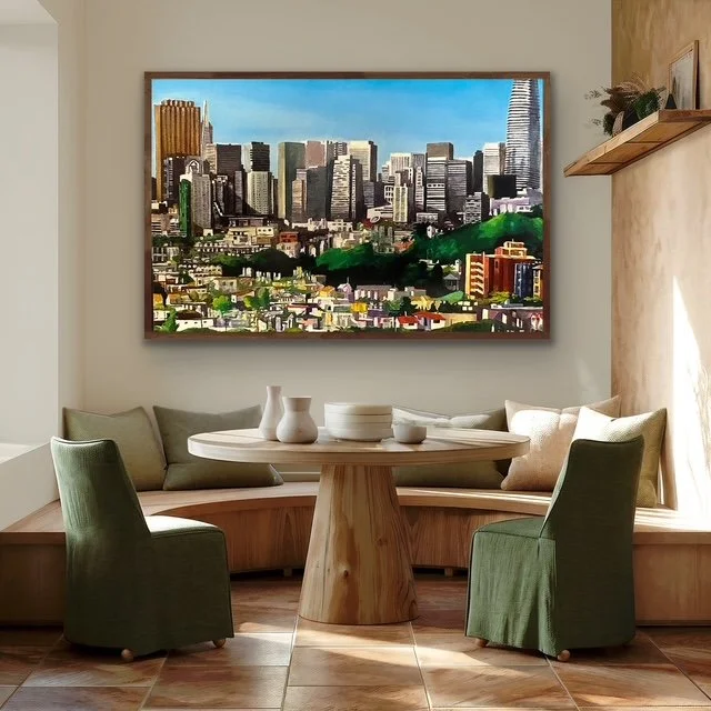 San Francisco artist James Gleeson not only creates iconic paintings of the city, but also has extensive experience collaborating with interior designers and real estate professionals. His artwork has been successfully placed in a wide range of interiors—from modern condos to classic San Francisco Victorians—where his use of vibrant color, iconic cityscapes, and striking compositions complement and elevate existing design schemes.
